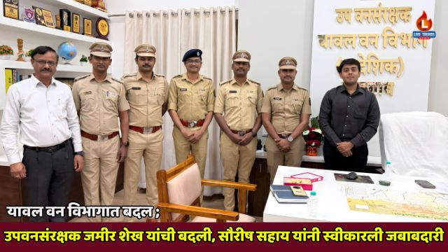 यावल-लाईव्ह ट्रेंड्स न्यूज प्रतिनिधी । जळगाव जिल्ह्यातील यावल वन विभागात प्रशासकीय पातळीवर महत्त्वाचा बदल झाला असून उपवनसंरक्षक जमीर शेख यांची नियतकालिक बदली करण्यात आली आहे. त्यांच्या जागी नव्याने उपवनसंरक्षक म्हणून सौरीष सहाय यांनी पदभार स्वीकारला असून त्यांनी गुरुवारी अधिकृतपणे कार्यभार हाती घेतला आहे. या बदलामुळे यावल वन विभागाच्या कामकाजात नवी दिशा मिळण्याची अपेक्षा व्यक्त केली जात आहे.