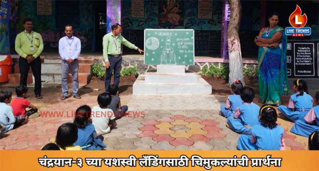 मुक्ताईनगर-लाईव्ह ट्रेंडस न्यूज प्रतिनिधी । १४ जुलै रोजी भारताने चंद्रावर पाठविलेल्या चंद्रयान-३ चे आज संध्याकाळी चंद्रावर ६ वाजून ४ मिनीटांनी लँडिंग होणार आहे. हे लँडिंग यशस्वीपणे व्हावे आणि भारत देशाचा सर्व जगामध्ये गौरव व्हावा म्हणून आज जिल्हा परिषद प्राथमिक शाळा घोडसगाव येथे चिमुकल्यांनी देवाकडे प्रार्थना केली.