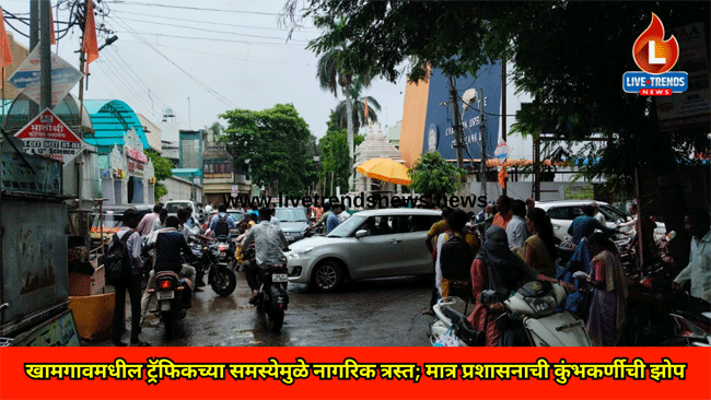कारण ज्या भागात अशा घटना घडतात वारंवार ट्रॅफिक जाम होतात विशेषतः शाळा कॉलेज सरकारी कार्यालय असता तिथे कायमस्वरूपी कठोर उपाययोजना करणे गरजेचे आहे. पण जोपर्यंत एखादी अप्रिय घटना घडत नाही कायदा व सुव्यवस्थाचा प्रश्न निर्माण होत नाही, तोपर्यंत संबंधित विभागाने यात हस्तक्षेप करावा नाही का हा देखील एक प्रश्न उभा राहतो पण आज पुन्हा तोच प्रसंग लाईव्ह ट्रेंडस न्युज कॅमेराने खामगाव शहरातील नॅशनल हायस्कूल जवळ चौकामध्ये टिपला. वेळ दुपारी १ वाजता होती. अक्षरशः एखाद्या मेट्रो शहरांमध्ये जसं ट्रॅफिक जाम होते तसं खामगाव शहरात एका मध्यभागी चौकात अशी घटना वारंवार घडतात काही वेळ याची दखल घेतल्या जाते व पुन्हा तेच चित्र वारंवार पाहायला मिळते यावर कायमस्वरूपी तोडगा निघणे गरजेचे आहे.