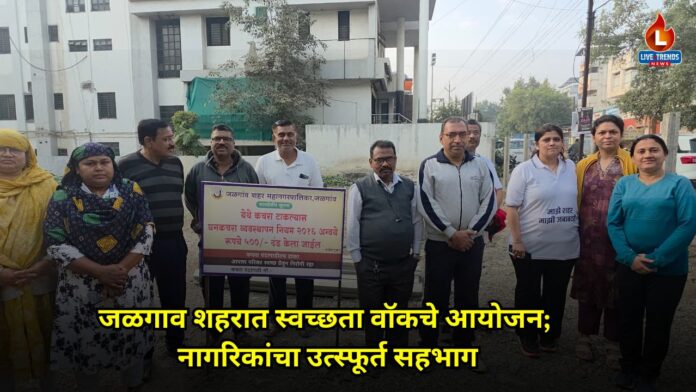 जळगाव-लाईव्ह ट्रेंडस न्यूज प्रतिनिधी । “माझे शहर माझी जबाबदारी” आणि एस. डी. फाउंडेशन यांच्या संयुक्त विद्यमाने आज शहरातील रणछोडदास नगर परिसरात स्वच्छता वॉकचे आयोजन करण्यात आले. या उपक्रमाला परिसरातील नागरिकांचा मोठा प्रतिसाद लाभला.