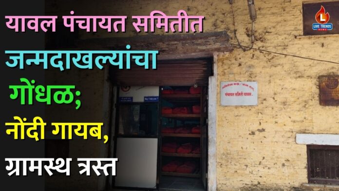 यावल पंचायत समितीत जन्मदाखल्यांचा गोंधळ; नोंदी गायब, ग्रामस्थ त्रस्त