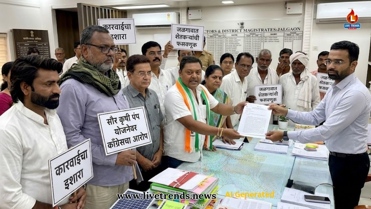 जळगाव-लाईव्ह ट्रेंड्स न्यूज प्रतिनिधी । जळगाव (ग्रामीण) तालुका काँग्रेस कमिटीने जिल्ह्यातील सौर कृषी पंप योजनेतील अनियमितता आणि शेतकऱ्यांच्या वाढत्या तक्रारींवरून प्रशासनाचे लक्ष वेधत जिल्हाधिकारी रोहन घुगे यांना निवेदन सादर केले. या निवेदनातून महाऊर्जा विभाग आणि संबंधित ठेकेदारांवर गंभीर आरोप करण्यात आले असून, शेतकऱ्यांची फसवणूक होत असल्याचा संताप व्यक्त करण्यात आला आहे.