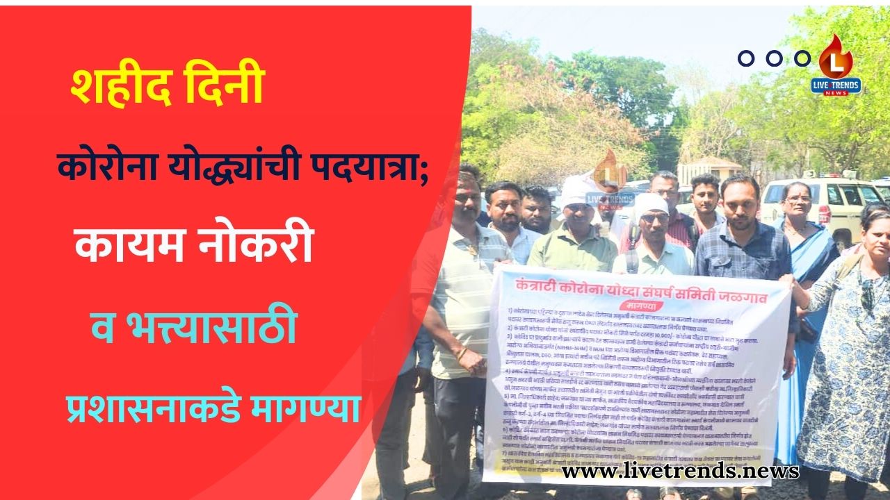 शहीद दिनी कोरोना योद्ध्यांची पदयात्रा; कायम नोकरी व भत्त्यासाठी प्रशासनाकडे मागण्या