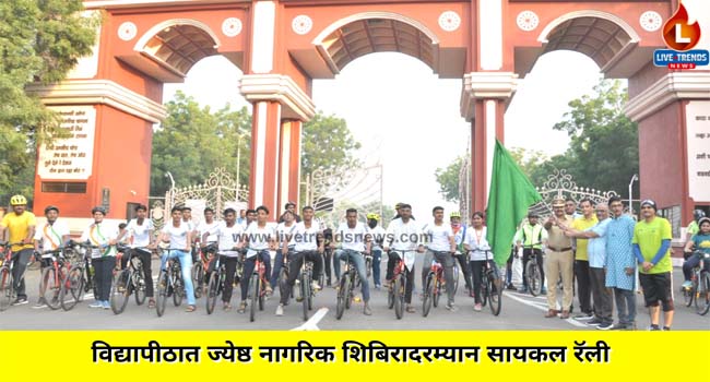 जळगाव-लाईव्ह ट्रेंडस न्यूज प्रतिनिधी । कवयित्री बहिणाबाई चौधरी उत्तर महाराष्ट्र विद्यापीठात सुरू असलेल्या ज्येष्ठ नागरिक शिबिरा दरम्यान ज्येष्ठ नागरिकांप्रती संवेदना व कृतज्ञता व्यक्त करण्यासाठी विद्यापीठात शुक्रवार १३ ऑक्टोबर रोजी सकाळी सायकल रॅली काढण्यात आली.