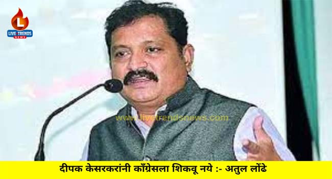मुंबई-लाईव्ह ट्रेंडस न्यूज वृत्तसेवा |काँग्रेसला विरोधी पक्षनेता निवडता येत नाही ते देश काय चालवणार? हे शालेय शिक्षणमंत्री दिपक केसरकरांचे विधान बालिश व अत्यंत हास्यास्पद आहे. पंतप्रधान नरेंद्र मोदी यांना देश चालवता येत नाही व एकनाथ शिंदेंना महाराष्ट्र चालवत येत नाही हे जनतेला समजले आहे. काँग्रेसने ६० वर्षांपेक्षा जास्त केंद्रातील व विविध राज्यात सरकारे चालवली आहेत, त्यामुळे देश कसा चालवायचा, हे केसरकर सारख्यांनी काँग्रेसला शिकवू नये, असा टोला प्रदेश काँग्रेस कमिटीचे मुख्य प्रवक्ते अतुल लोंढे यांनी लगावला आहे.