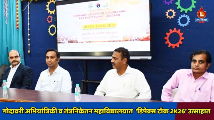 जळगाव-लाईव्ह ट्रेंड्स न्यूज प्रतिनिधी । गोदावरी फाउंडेशन संचलित, स्वायत्त व नॅक मानांकित गोदावरी अभियांत्रिकी व तंत्रनिकेतन महाविद्यालयात ‘डिपेक्स टॉक 2K26’ हा कार्यक्रम मोठ्या उत्साहात पार पडला. ‘अखिल भारतीय विद्यार्थी परिषद’च्या सहकार्याने आयोजित या उपक्रमातून विद्यार्थ्यांना तंत्रज्ञान, सायबर सुरक्षा आणि करिअरच्या नव्या संधींबाबत मार्गदर्शन मिळाले.