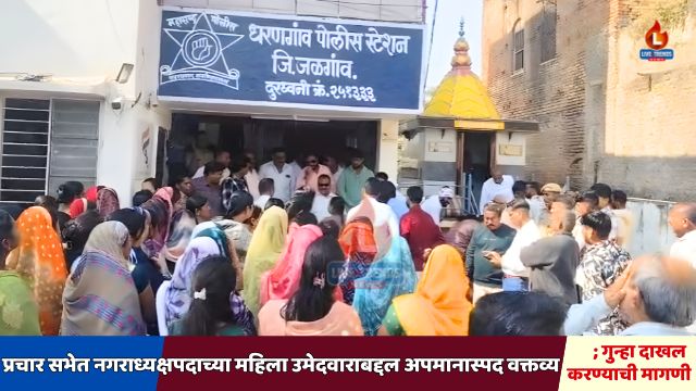 धरणगाव-लाईव्ह ट्रेंडस न्यूज प्रतिनिधी । धरणगाव नगरपरिषद निवडणुकीच्या रणधुमाळीत आता वैयक्तिक चारित्र्य हननासारख्या अत्यंत गंभीर आणि गलिच्छ राजकारणाने प्रवेश केल्याने शहरात खळबळ उडाली आहे. विरोधी पक्षाच्या एका नेत्याने नगराध्यक्षपदाच्या महिला उमेदवाराबद्दल अतिशय खालच्या स्तराचे, बदनामीकारक आणि भावना दुखावणारे शब्द वापरल्याबद्दल संबंधित उमेदवाराच्या समर्थकांनी गुरूवारी ४ डिसेंबर रोजी दुपारी १२ वाजता थेट धरणगाव पोलीस ठाण्यात धाव घेतली असून, संबंधितांवर कठोर कायदेशीर कारवाई करण्याची मागणी केली आहे.