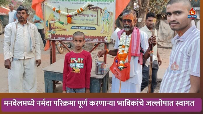यावल-लाईव्ह ट्रेंडस न्यूज प्रतिनिधी । भारतीय संस्कृतीत नद्यांना माता मानून त्यांची पूजा करण्याची परंपरा प्राचीन काळापासून जपली जात आहे. नद्यांप्रती कृतज्ञता आणि आदर व्यक्त करण्यासाठी विविध धार्मिक परंपरा प्रचलित आहेत. त्यामध्ये नर्मदा परिक्रमा ही अत्यंत पवित्र आणि वैशिष्ट्यपूर्ण परंपरा मानली जाते. अशाच या पवित्र परंपरेचे पालन करत मनवेल येथील चंपालाल गोकुळ पाटील यांनी नर्मदा मातेची पाचवी पायी परिक्रमा पूर्ण केली असून गावात त्यांच्या आगमनानंतर ग्रामस्थांनी त्यांचे भक्तीमय वातावरणात उत्स्फूर्त स्वागत केले.