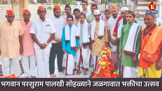 जळगाव-लाईव्ह ट्रेंड्स न्यूज प्रतिनिधी । जळगाव शहरातील मुक्ताईनगर परिसरात ब्रह्मश्री बहुउद्देशीय संस्थेच्या वतीने आयोजित करण्यात आलेल्या भगवान परशुराम पालखी सोहळ्याने परिसरात भक्तीमय वातावरण निर्माण केले. घरोघरी उत्स्फूर्त स्वागत, टाळ-मृदंगाचा गजर आणि पारंपरिक वेशभूषेत सहभागी झालेल्या भाविकांमुळे हा सोहळा विशेष आकर्षण ठरला.