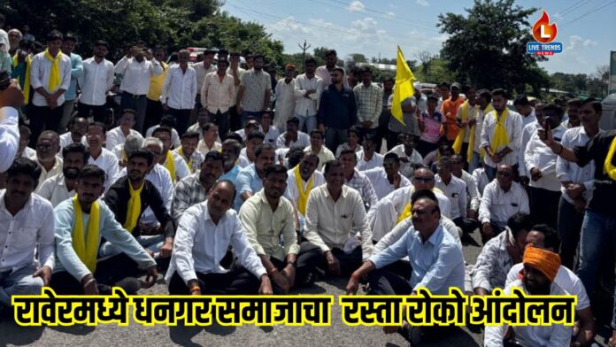 एस.टी. आरक्षणासाठी रावेरमध्ये धनगर समाजाचा भव्य रस्ता रोको आंदोलन