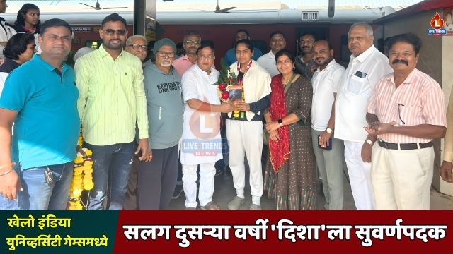 भव्य स्वागत आणि अभिनंदन दिशाच्या सुवर्णपदकाच्या विजयाची बातमी कळताच आज सकाळी जळगाव रेल्वे स्टेशनवर मराठा सेवा संघ आणि संभाजी ब्रिगेडच्या पदाधिकाऱ्यांनी तिचे जंगी स्वागत केले. मराठा सेवा संघाचे प्रदेश उपाध्यक्ष शिवश्री सुरेंद्र पाटील, विभागीय अध्यक्ष शिवश्री राम पवार, ज्येष्ठ मार्गदर्शक सुरेश पाटील, मधुकर पाटील, जिल्हा कार्याध्यक्ष शिवश्री हिरामण चव्हाण, कार्यकारिणी सदस्य संदीप सोनवणे आणि पंकज गरुड यांच्यासह अनेक मान्यवरांनी मोठ्या संख्येने उपस्थित राहून शाल, पुष्पगुच्छ आणि ग्रंथ भेट देऊन ‘शिवशुभेच्छां’सह तिचे अभिनंदन केले.