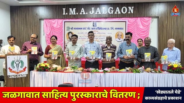 जळगाव-लाईव्ह ट्रेंडस न्यूज प्रतिनिधी । सांस्कृतिक वार्ताहर: श्री गजानन हार्ट अँड आय हॉस्पिटल प्रा. लि. यांच्यातर्फे प्रायोजित करण्यात आलेल्या स्व. गणेश चौधरी व स्व. दिवाकर चौधरी सर्वोत्कृष्ट साहित्य पुरस्कारांचे वितरण जळगाव येथील आयएमए सभागृहात मोठ्या उत्साहात पार पडले. या समारंभात दोन उत्कृष्ट साहित्यकृतींचा सन्मान करण्यात आला, तसेच एका काव्यसंग्रहाचे प्रकाशनही झाले.