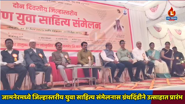 जामनेर-लाईव्ह ट्रेंड्स न्यूज प्रतिनिधी । जामनेर शहरात साहित्य, संस्कृती आणि युवकांच्या सर्जनशीलतेचा संगम घडवणाऱ्या दोन दिवशीय जिल्हास्तरीय युवा साहित्य संमेलनास मोठ्या उत्साहात सुरुवात झाली. सांस्कृतिक मंडळ जामनेरतर्फे आयोजित या संमेलनाची पहिल्या दिवशी ग्रंथदिंडीने मंगलारंभ करण्यात आला असून शहरात साहित्यिक वातावरण निर्माण झाले आहे.