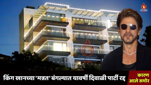 मुंबई – लाईव्ह ट्रेंड्स न्यूज वृत्तसेवा । बॉलिवूडचा ‘बादशाह’ म्हणून ओळखला जाणारा शाहरुख खान नेहमीच आपल्या चित्रपटांसोबतच त्याच्या आलिशान दिवाळी पार्टीसाठीही चर्चेत असतो. दरवर्षीप्रमाणे यंदाही चाहत्यांना आणि बॉलिवूडमधील सेलिब्रिटींना ‘मन्नत’मधील दिवाळी पार्टीची उत्सुकता होती. मात्र यंदा ही परंपरा खंडित होत आहे. किंग खानच्या ‘मन्नत’ बंगल्यात यावर्षी दिवाळी पार्टी होणार नाही, आणि यामागचं कारणही आता स्पष्ट झालं आहे.