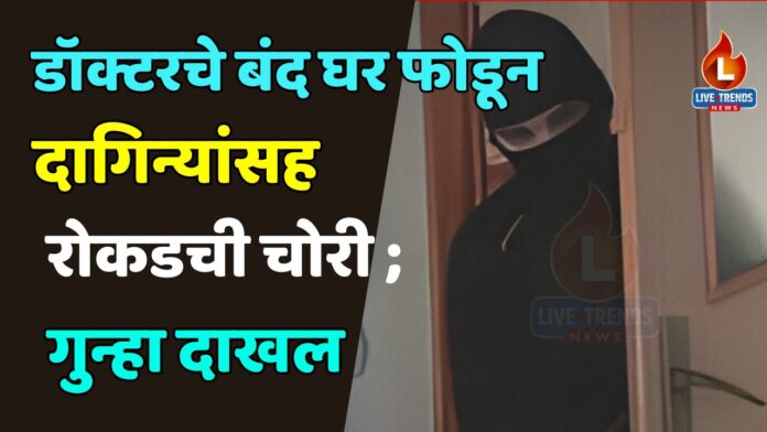 जळगाव-लाईव्ह ट्रेंडस न्यूज प्रतिनिधी । जळगाव शहरातील बळीराम पेठ परिसरात एका नामांकित डॉक्टरचे घर फोडून चोरट्यांनी सोन्याचे दागिने आणि रोख रकमेसह ३२ हजार रुपयांचा मुद्देमाल लांबवल्याची घटना उघडकीस आली आहे. फिर्यादी डॉक्टर आपल्या कुटुंबासह पुण्याला मुलाकडे गेले असताना ही चोरी झाली.