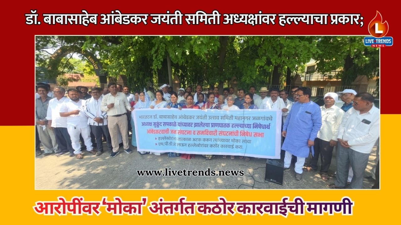 जळगाव- लाईव्ह ट्रेंड्स न्यूज प्रतिनिधी । जळगाव शहरात भारतरत्न डॉ. बाबासाहेब आंबेडकर जयंती उत्सव समितीचे अध्यक्ष मुकुंद सपकाळे यांच्यावर झालेल्या प्राणघातक हल्ल्याच्या घटनेने शहरात खळबळ उडाली असून, संबंधित आरोपींना तात्काळ अटक करून कठोर कारवाई करण्याची मागणी सामाजिक संघटनांकडून करण्यात आली आहे. यासंदर्भात जिल्हाधिकारी कार्यालयासमोर सोमवार, २० एप्रिल रोजी निषेध आंदोलन करत जिल्हाधिकाऱ्यांना निवेदन देण्यात आले.
