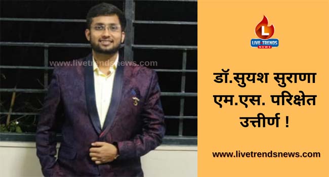 बोदवड-लाईव्ह ट्रेंडस न्यूज प्रतिनिधी | येथील डॉ. सुयश दिलीपकुमार सुराणा यांनी एम.एस. या परिक्षेत उत्तीर्ण होऊन शहराच्या मानपेचात मानाचा तुरा रोवला आहे.
