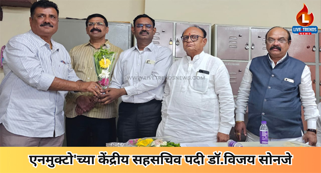 सावदा-लाईव्ह ट्रेंडस न्यूज प्रतिनिधी | नुकत्याच झालेल्या ‘एनमुक्टो’ केंद्रीय कर्यकारणीच्या बैठकीत केंद्रीय एक्झिक्युटिव्ह बोर्डवर प्रा.डॉ.विजय सोनजे यांची सहसचिव पदी निवड करण्यात आली, त्यांच्या नियुक्तीस महाराष्ट्र फेडरेशन ऑफ कॉलेज टीचर्स ऑर्गनाईजेशन चे अध्यक्ष डॉ.संजय सोनवणे यांनी मान्यता देवून त्यांचा सत्कार करण्यात आला.