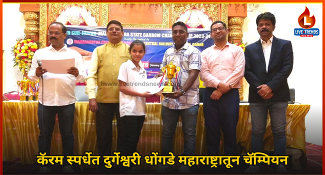 जळगाव -लाईव्ह ट्रेंडस न्यूज प्रतिनिधी ।– मुंबई-दादर येथे ५७ वी सब ज्युनिअर महाराष्ट्र कॅरम स्टेट चॅम्पियनशिप स्पर्धा पार पडली. २८ ते २९ जानेवारी दरम्यान झालेल्या या स्पर्धेत जळगावची दुर्गेश्वरी योगेश धोंगडे महाराष्ट्रातून चॅम्पियन ठरली.