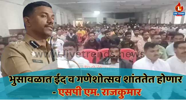 भुसावळ-लाईव्ह ट्रेंडस न्यूज प्रतिनिधी । शहरातील शांतताप्रिय व उत्सव प्रिय नागरिकांवर माझा पूर्णपणे विश्वास असून येणारा गणेश उत्सव व ईद हे दोघेही सण अत्यंत उत्साहात व शांततेत संपन्न होतील असा आशावाद पोलीस अधीक्षक एम. राजकुमार यांनी व्यक्त केला.