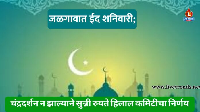 जळगाव-लाईव्ह ट्रेंड्स न्यूज प्रतिनिधी । जळगाव जिल्ह्यातील सुन्नी मुस्लिम बांधवांसाठी ईद उल फित्रच्या तारखेबाबत महत्त्वपूर्ण निर्णय जाहीर करण्यात आला आहे. संपूर्ण देशात कुठेही चंद्रदर्शन न झाल्यामुळे यंदाची ईद उल फित्र शुक्रवारऐवजी शनिवार, दि. २१ मार्च २०२६ रोजी साजरी करण्यात येणार असल्याचे सुन्नी रुयते हिलाल कमिटीने स्पष्ट केले आहे.