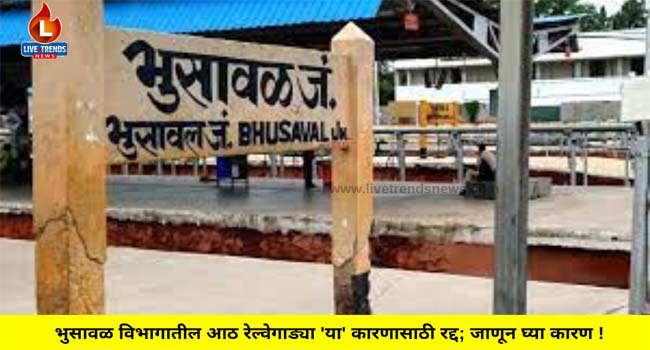 भुसावळ-लाईव्ह ट्रेंडस न्यूज प्रतिनिधी । भुसावळ विभागातून धावणाऱ्या आठ रेल्वे गाड्या रद्द करण्यात आले आहे. झांशी रेल्वे जंक्शन रेल्वे स्थानकावर पॉवर आणि ट्रॅफिक ब्लॉक झाल्यामुळे रेल्वे प्रशासनाला हा निर्णय घ्यावा लागला आहे.