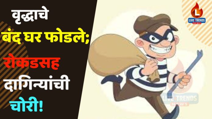 जळगाव लाईव्ह ट्रेंड्स न्यूज प्रतिनिधी | जळगाव शहरातील मुकुंद नगर येथे राहणाऱ्या एका वृद्धाचे बंद घर फोडून घरातून सोन्या चांदीचे दागिने आणि रोकड असा ऐकून 61 हजार 500 रुपये किमतीचा मुद्देमाल चोरून नेल्याची घटना आले आहे. या संदर्भात रात्री एमआयडीसी पोलीस ठाण्यात अज्ञात चोरट्यांवर गुन्हा दाखल करण्यात आला आहे.