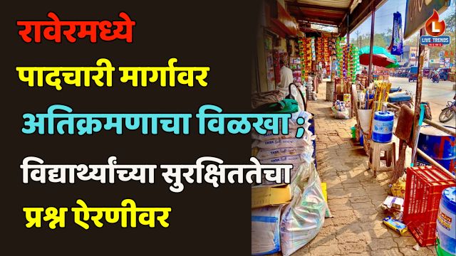 रावेर-लाईव्ह ट्रेंड्स न्यूज प्रतिनिधी । रावेर नगरपालिकेच्या हद्दीत विद्यार्थी व नागरिकांच्या सुरक्षित पायी ये-जा साठी लाखो रुपये खर्चून तयार करण्यात आलेले पादचारी मार्ग सध्या अतिक्रमणाच्या विळख्यात सापडले आहेत. स्थानिक दुकानदारांनी या पादचारी मार्गांवर केलेल्या अतिक्रमणामुळे सामान्य नागरिकांसह शाळा व महाविद्यालयीन विद्यार्थ्यांना मोठ्या गैरसोयींचा सामना करावा लागत असून, नागरिकांमध्ये तीव्र संताप व्यक्त होत आहे.