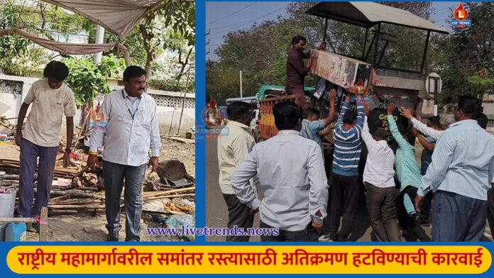 राष्ट्रीय महामार्गावरील समांतर रस्त्यासाठी अतिक्रमण हटविण्याची कारवाई