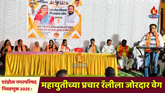 एरंडोल–लाईव्ह ट्रेंड्स न्यूज प्रतिनिधी । एरंडोल नगरपरिषद सार्वत्रिक निवडणुका 2025 च्या पार्श्वभूमीवर प्रभाग क्र. ५ व ८ मधील महायुतीच्या उमेदवारांच्या प्रचाराला जोरदार वेग आला आहे. आज महायुतीतर्फे भव्य प्रचार रॅलीचे आयोजन करण्यात आले असून, या रॅलीत कार्यसम्राट आमदार दादासाहेब अमोल पाटील यांनी स्वतः उपस्थित राहून जनतेशी संवाद साधत उमेदवारांना पाठिंबा देण्याचे आवाहन केले. रॅलीदरम्यान त्यांनी माय-बाप मतदारांचे आशिर्वाद घेत पुढील विकासकामांची हमी दिली.