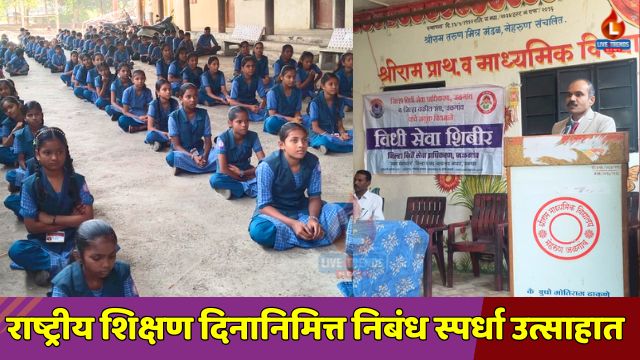 जळगाव-लाईव्ह ट्रेंड्स न्यूज प्रतिनिधी । राष्ट्रीय शिक्षण दिनाचे औचित्य साधून जिल्हा विधी सेवा प्राधिकरण, जळगाव यांच्या वतीने मेहरुण येथील श्रीराम माध्यमिक विद्यालयात विशेष कार्यक्रम व निबंध स्पर्धेचे आयोजन करण्यात आले. विद्यार्थ्यांना शिक्षणाचे जीवनातील महत्व समजावून देत या कार्यक्रमातून विधी सेवा प्राधिकरणाने जनजागृतीचा संदेश दिला.