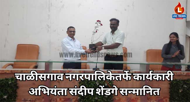 चाळीसगाव-लाईव्ह ट्रेन्ड्स न्यूज प्रतिनिधी | आपल्या कार्यात उल्लेखनीय कामगिरी केल्याबाबत येथील वीज वितरण कंपनीच्या कार्यकारी अभियंता संदीप शेंडगे यांना नगरपालिकेच्या वतीने सन्मानपत्र देऊन नुकतीच गौरविण्यात आले.