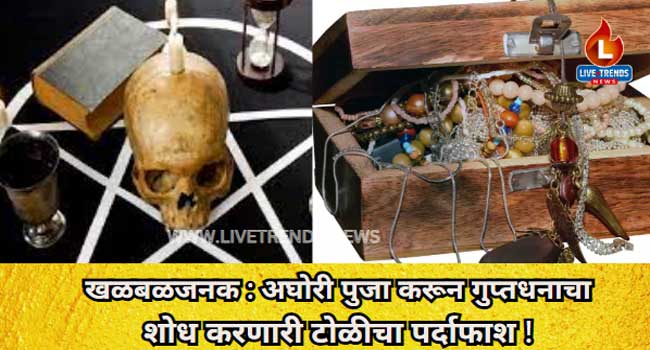 संशयित आरोपी गोलाकार स्थीतीत खाली बसुन त्यामध्ये मानवी खोपडी ,लिंबु, नारळ, रुद्राक्ष माळ, देवाची पितळी मुर्ती, पिवळया धातुचा नाग, पत्रावरील छापील देव, कंदमुळे,गोलाकार पितळी धातुचे बेरकंगण, केशरी शेदुर,आगरबत्ती पुडा,लोखंडी आडकीत्ता व कापुराची पुजा मांडुन गुप्तधना करीता आघोरी कृत्य करीत असल्याचे समोर आले. सुमारे मोबाईल, कार आणि अघोरी पुजा करण्याचे साहित्य असा एकुण ८ लाख ३५ हजारांचा मु्देमाल हस्तगत केला आहे. याप्रकरणी पोकॉ पवन पाटील यांनी दिलेल्या फिर्यादीवरून चाळीसगाव शहर पोलीस ठाण्यात गुन्हा दाखल करण्यात आला आहे. पुढील तपास सपोनि सागर ढिकले व पोकॉ प्रकाश पाटील हे करीत आहेत.