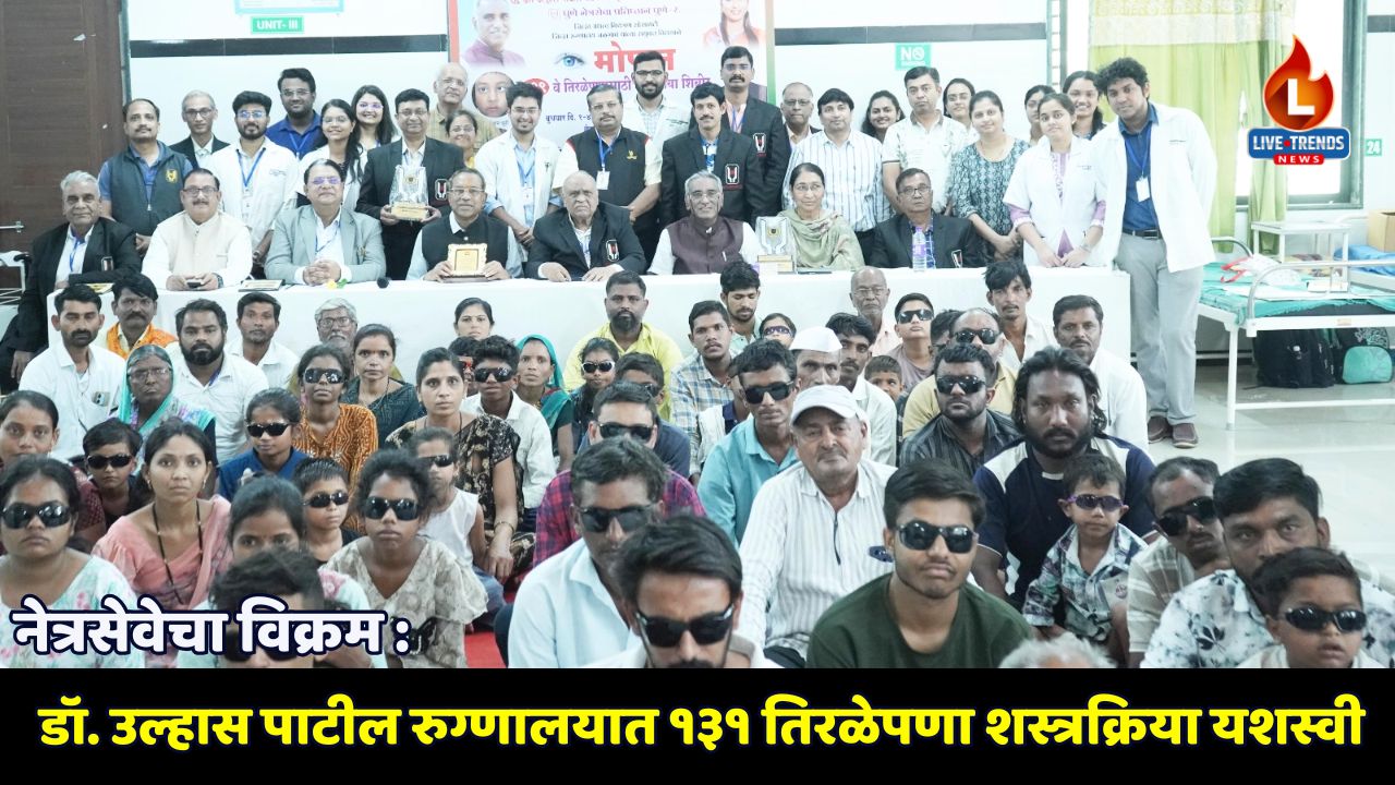 जळगाव-लाईव्ह ट्रेंड्स न्यूज प्रतिनिधी । जळगाव शहरातील डॉ. उल्हास पाटील वैद्यकीय महाविद्यालय व रुग्णालयात आयोजित मोफत तिरळेपणा शस्त्रक्रिया शिबिराने नेत्रसेवेच्या क्षेत्रात ऐतिहासिक कामगिरी नोंदवली असून अवघ्या दोन दिवसांत तब्बल १३१ शस्त्रक्रिया यशस्वीपणे पार पडल्या आहेत. या उपक्रमामुळे आर्थिकदृष्ट्या दुर्बल रुग्णांना मोठा दिलासा मिळत असून त्यांच्या चेहऱ्यावर समाधानाचे हास्य फुलले आहे.