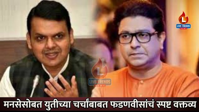 मुंबई – लाईव्ह ट्रेंड्स न्यूज वृत्तसेवा। मुंबई महापालिकेच्या निवडणुकीच्या पार्श्वभूमीवर महाराष्ट्रात राजकीय हालचालींना वेग आला असताना, मुख्यमंत्री देवेंद्र फडणवीस यांनी स्पष्ट वक्तव्य करत महाराष्ट्र नवनिर्माण सेनेसोबतच्या युतीच्या चर्चांना पूर्णविराम दिला आहे. “कोणी भेटायला आलं म्हणजे युती होते असं नसतं,” असं सांगत फडणवीसांनी महायुतीत कोणताही बदल होणार नसल्याचं ठामपणे सांगितलं आहे. त्यांच्या या वक्तव्यानं मनसेसोबत युतीची शक्यता पूर्णतः संपुष्टात आल्याचं स्पष्ट झालं आहे.