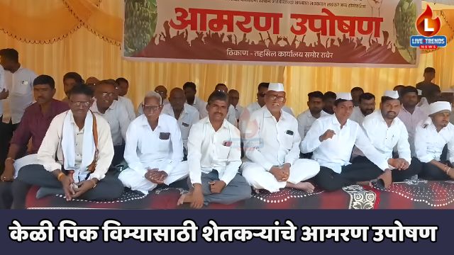 रावेर-लाईव्ह ट्रेंड्स न्यूज प्रतिनिधी । सावदा कृषी मंडळातील केळी पिक विमाचा परतावा अद्याप न मिळाल्याने संतप्त झालेल्या शेतकऱ्यांनी रावेर तहसीलदार कार्यालयासमोर आमरण उपोषण सुरू केले आहे. शेकडो शेतकरी या आंदोलनात सहभागी झाले असून प्रशासन आणि विमा कंपनीविरोधात तीव्र नाराजी व्यक्त केली जात आहे.