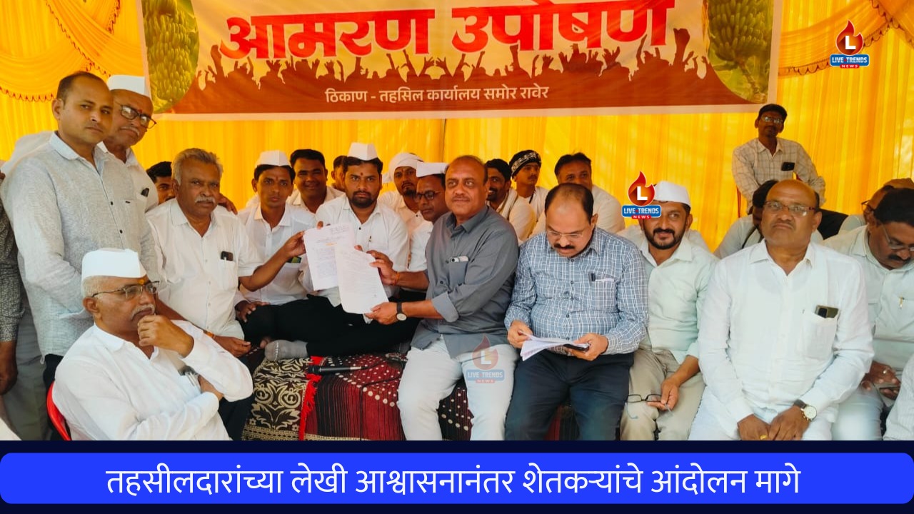 रावेर/सावदा-लाईव्ह ट्रेंडस न्यूज प्रतिनिधी | येथे आमरण उपोषणासाठी बसलेल्या शेतकऱ्यांना तब्बल २२ कोटी रूपयांची विम्याची रक्कम मिळणार असल्याचे लेखी आश्वासन तहसीलदारांनी दिल्यानंतर येथे शेतकऱ्यांनी सुरू केलेल्या आमरण उपोषणाची सांगता केली. भाजप नेते नंदकिशोर महाजन यांच्या उपस्थितीत शेतकऱ्यांनी उपोषण सोडले.