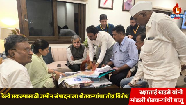 नवी दिल्ली – लाईव्ह ट्रेंड्स न्यूज वृत्तसेवा । भुसावळ ते खंडवा या प्रस्तावित तिसऱ्या व चौथ्या रेल्वे लाईनसाठी गहूखेडा ते फेकरीदरम्यान २२ किमी लांबीच्या मार्गावर जमीन संपादनाची प्रक्रिया सुरू करण्यात आली आहे. मात्र, या भूमी संपादनाचा जोरदार विरोध स्थानिक शेतकऱ्यांनी केला असून त्यांच्या अडचणी, नुकसान व रोजगाराच्या प्रश्नांना वाचा फोडण्यासाठी केंद्रीय राज्यमंत्री रक्षाताई खडसे यांनी थेट दिल्लीतील रेल भवनमध्ये रेल्वे बोर्डाचे चेअरमन सतीश कुमार यांच्यासमवेत शेतकरी प्रतिनिधींसोबत बैठक घेतली.