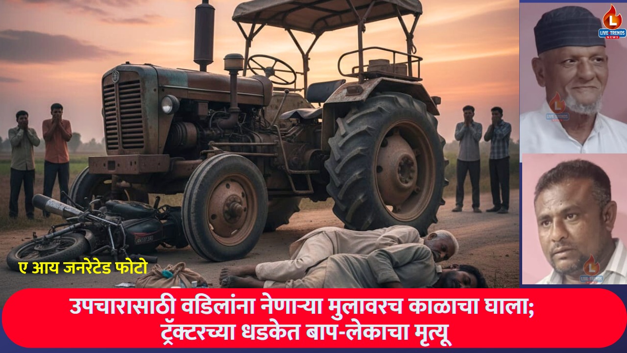 जळगाव-लाईव्ह ट्रेंड्स न्यूज प्रतिनिधी । जिल्ह्यातील चोपडा तालुक्यातील घार्डी फाटा परिसरात शुक्रवारी एक अत्यंत भीषण आणि काळजाचा ठोका चुकवणारा अपघात घडला. आजारी वडिलांना उपचारासाठी शहरात घेऊन जाणाऱ्या मुलाच्या दुचाकीला ट्रॅक्टरने जोरदार धडक दिली. या दुर्दैवी घटनेत बाप आणि लेक दोघांचाही अंत झाला असून, लासुर गावावर शोककळा पसरली आहे.