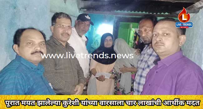 पूरात मयत झालेल्या कुरेशी यांच्या वारसाला चार लाखांची आर्थीक मदत