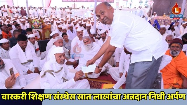 फैजपूर-लाईव्ह ट्रेंड्स न्यूज प्रतिनिधी । फैजपूर व पंचक्रोशीतील भाविकांनी सामाजिक व अध्यात्मिक बांधिलकी जपत आळंदी येथील जोग महाराज वारकरी शिक्षण संस्थेस सुमारे सात लाख रुपयांचा अन्नदान निधी अर्पण करून एक प्रेरणादायी उदाहरण समाजासमोर ठेवले आहे. वारकरी परंपरेचे संवर्धन आणि गरीब, निराधार विद्यार्थ्यांच्या सेवेसाठी दिलेला हा निधी भाविकांच्या श्रद्धेचे प्रतीक ठरत आहे.