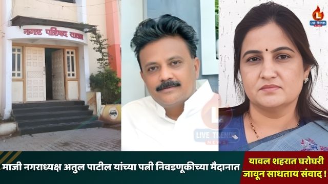 यावल-लाईव्ह ट्रेंड्स न्यूज प्रतिनिधी । यावल नगरपरिषद निवडणुकीची घोषणा होताच शहरातील राजकीय वातावरणात चुरस पाहायला मिळत आहे. यंदा नगराध्यक्ष पद सर्वसाधारण महिलेसाठी राखीव असल्याने महिला नेतृत्वाला पुढे येण्याची मोठी संधी निर्माण झाली आहे. महाविकास आघाडीच्या वतीने शिवसेना (उद्धव बाळासाहेब ठाकरे) पक्षाने माजी नगराध्यक्ष अतुल पाटील यांच्या पत्नी सौ. छाया पाटील यांना उमेदवारी जाहीर केली असून त्यांच्या प्रचाराला शहरातून उत्साहवर्धक प्रतिसाद मिळत आहे.