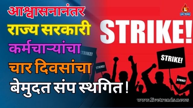 जळगाव-लाईव्ह ट्रेंडस न्यूज प्रतिनिधी । राज्य सरकारी कर्मचारी मध्यवर्ती संघटनेच्या नेतृत्वाखाली २१ एप्रिल २०२६ पासून पुकारण्यात आलेला राज्यव्यापी बेमुदत संप अखेर चौथ्या दिवशी स्थगित करण्यात आला आहे. राज्य शासनाने कर्मचाऱ्यांच्या १८ प्रमुख मागण्यांबाबत सकारात्मक भूमिका घेत लेखी आश्वासन दिल्यानंतर हा निर्णय घेण्यात आला.