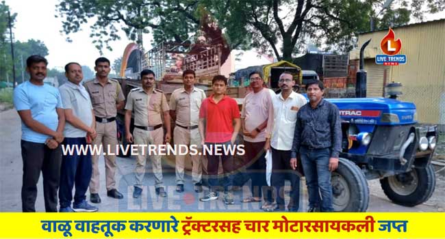 रावेर-लाईव्ह ट्रेंडस न्यूज प्रतिनिधी । रावेर तालुक्यातील पाल येथून अवैधरित्या वाळू वाहतूक करणारे ट्रॅक्टर व मदत करणारे चार मोटारसायकली जप्त करण्यात आली आहे. या कारवाईमुळे वाळूमाफियांमध्ये खळबळ उडाली आहे.