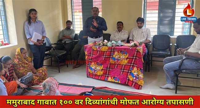 जळगाव-लाईव्ह ट्रेंडस न्यूज प्रतिनिधी | तालुक्यातील ममुराबाद गावात ममुराबाद ग्रामपंचायत, लोकसेवक मधुकरराव चौधरी समाजकार्य महाविद्यालय, गोदावरी फाउंडेशनतर्फे नुकतेच दिव्यांगांसाठी मोफत आरोग्य तपासणी शिबिर आयोजित करण्यात आले होते. शिबिरात दिवसभरात तब्बल १०० वर दिव्यांगांची आरोग्य तपासणी करण्यात आली.