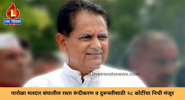 पारोळा-लाईव्ह ट्रेंडस न्यूज प्रतिनिधी । पारोळा मतदार संघातील रस्त्यांच्या कामे, रूदीकरण आणि दुरूस्तीच्या कामासाठी शानाकडून २८ कोटी रूपयांचा निधी मंजूर करण्यात आला. आमदार चिमणराव पाटील यांच्या पाठपुरावा केल्याने निधी मंजूर झाला आहे.