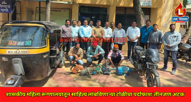 जळगाव-लाईव्ह ट्रेंडस न्यूज प्रतिनिधी । शहरातील मोहाडी रोडवरील शासकीय महिला रूग्णाालयाच्या बांधकामाच्या ठिकाणाहून १ लाख २७ हजार रुपये किमतीचे साहित्य चोरून नेणाऱ्या टोळीचा पर्दाफाश एमआयडीसी पोलिसांनी केला आहे. यात तांबापूर येथून ३ संशयित आरोपींना मुद्देमालासह अटक केली आहे.