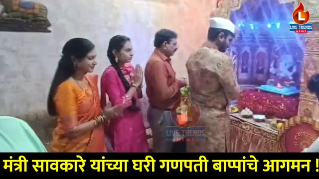 दरवर्षीप्रमाणेच, यंदाही मंत्री संजय सावकारे यांनी पर्यावरण संवर्धनाचा संदेश देत मातीच्या गणेश मूर्तीची प्रतिष्ठापना केली. पारंपरिक रीतीरिवाजांनुसार बाप्पाच्या आगमनानिमित्त संपूर्ण घर उत्साहाच्या वातावरणाने भारले होते. यावेळी मंत्रोच्चार आणि आरतीने परिसर मंगलमय झाला. सावकारे यांनी कुटुंबासोबत गणेश मूर्तीची स्थापना करून दहा दिवसांच्या उत्सवाचा प्रारंभ केला.