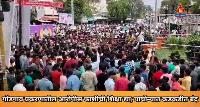 पाचोरा-लाईव्ह ट्रेंडस न्यूज प्रतिनिधी । भडगाव तालुक्यातील गोंडगाव येथील आठ वर्षांच्या चिमुकल्या मुलीवर येथील नराधमाने अतिप्रसंग करुन तिला जीवे ठार मारले त्या नराधमास तात्काळ फाशीची शिक्षा व्हावी. यासाठी सदरचा गुन्हा फास्ट ट्रॅक कोर्टात चालवावा या मागणीसाठी पाचोरा येथे संपर्क शहरातील किराणा दुकाने, मेडिकल, दवाखाने, जनरल स्टोअर्स, हॉटेल, पानटपऱ्या, कापड दुकाने, भाजीपाला विक्री, प्राथमिक, माध्यमिक शाळा, महाविद्यालयात, इंग्रजी माध्यमाच्या शाळांसह सर्व व्यवहार कडकडीत बंद ठेवण्यात आले आहेत.