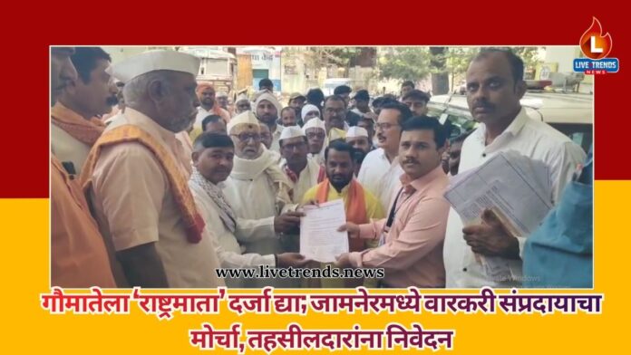 Home Cities जामनेर गौमातेला ‘राष्ट्रमाता’ दर्जा द्या; जामनेरमध्ये वारकरी संप्रदायाचा मोर्चा, तहसीलदारांना निवेदन